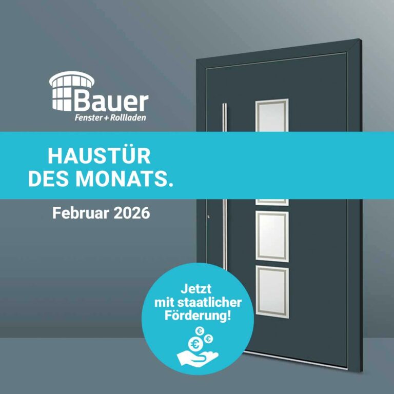 Bei Bauer verstehen wir, dass die Haustür mehr ist als nur ein Eingang. Sie ist die Visitenkarte Ihres Zuhauses, die Sicherheit, Wärme und Stil vereint. Unser „Haustür des Monats“ Angebot präsentiert Ihnen eine Tür, die nicht nur mit ihrem eleganten Design besticht, sondern auch in puncto Sicherheit und Wärmedämmung neue Maßstäbe setzt. Und die sich durch unseren Angebotspreis und die staatliche Förderung rechnet. Lassen Sie sich beraten.