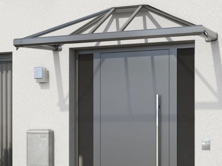 Mit einem Vordach aus Aluminium verleihen Sie Ihrem Hauseingang eine individuelle Note. Die Aluminiumprofile geben dem Design eine optische Leichtigkeit. Sie erhalten die Profile mit witterungsbeständiger Pulverbeschichtung standardmäßig in Weiß und Anthrazitgrau oder gegen Aufpreis in allen gewünschten Farben.